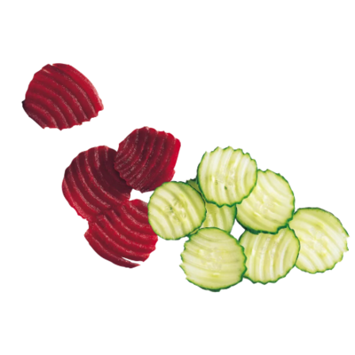 - Formă ondulată (Ripple Cut):Designul special al lamei permite realizarea de felii ondulate („crinkle cut”) cu precizie și uniformitate, oferind preparatelor un aspect profesional și atractiv.